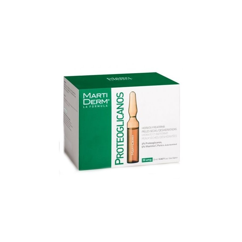 TRATAMIENTO Y PREVENCIÓN DE LAS ARRUGAS DE CARA Y CUELLO, FLACIDEZ Y OTRAS MANIFESTACIONES DE FOTOENVEJECIMIENTO CUTÁNEO PREMATURO PRODUCIDO POR LA EXPOSICIÓN SOLAR Y EL STRESS OXIDATIVO AMBIENTAL. CORRECCIÓN PAULATINA DE LAS ARRUGAS GRACIAS AL PODER REPARADOR DEL PROTEOGLICANO. PREVENCIÓN CONTRA LA FORMACIÓN DE NUEVAS ARRUGAS GRACIAS AL PODER ANTIOXIDANTE DE LA VITAMINA C PURA (5%).BENEFICIOS: HIDRATANTE, REAFIRMANTE, ANTIOXIDANTE Y REPARADORA. DOBLE EFECTO:INMEDIATO PUEDEN APLICARSE COMO RECURSO INMEDIATO CUANDO SE QUIERE DAR UNA APARIENCIA DE TERSURA Y LUMINOSIDAD.A LARGO PLAZO REAFIRMAN E HIDRATAN. ELIMINACIÓN PAULATINA DE LAS ARRUGAS.INDICACIONESUTILIZAR DE ACUERDO CON EL ESTADO DE SU PIEL. USAR EN ALTERNANCIA CON OTROS PRODUCTOS MARTIDERMO BIEN REALIZAR UN USO INTENSIVO EN LOS CAMBIOS DE ESTACIÓN.SI APARECIERAN IRRITACIONES DEBIDAS A LA ALTA CONCENTRACIÓN DE VITAMINA C, ESPACIAR LAS APLICACIONES HASTA QUE LA PIEL SE HABITÚE.EN PERSONAS DE PIEL SENSIBLE, LA ACIDEZ NATURAL DEL PRODUCTO DEBIDO A LA ALTA CONCENTRACIÓN DE VITAMINA C, PUEDE PROVOCAR UNA LIGERA IRRITACIÓN QUE DESAPARECE RÁPIDAMENTE.USO EXTERNO. EVITAR EL CONTACTO CON OJOS Y MUCOSAS. EN CASO DE CONTACTO ACCIDENTAL CON LOS OJOS, ACLARAR ABUNDANTEMENTE CON AGUA CLARA. SI LOS PROBLEMAS PERSISTIERAN, CONSULTAR A SU MÉDICO.EL CONTENIDO EN VITAMINA C DE LA AMPOLLA PUEDE COLOREAR LAS YEMAS DE LOS DEDOS E INCLUSO LA ROPA DE CONTACTO. PARA EVITARLO, DEBEN LAVARSE BIEN LAS MANOS DESPUÉS DE CADA APLICACIÓN.