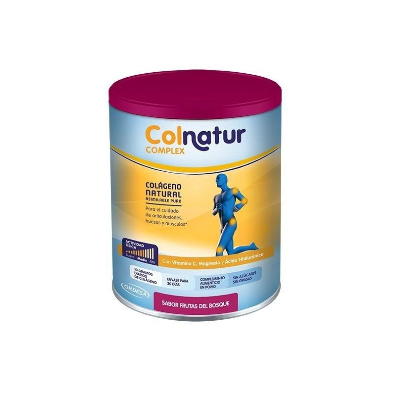 COLNATUR COMPLEX SABOR FRUTAS DEL BOSQUE:COLÁGENO NATURAL ASIMILABLE PURO CON VITAMINA C, MAGNESIO Y ÁCIDO HIALURÓNICO PARA EL CUIDADO DE ARTICULACIONES, HUESOS Y MÚSCULOS.