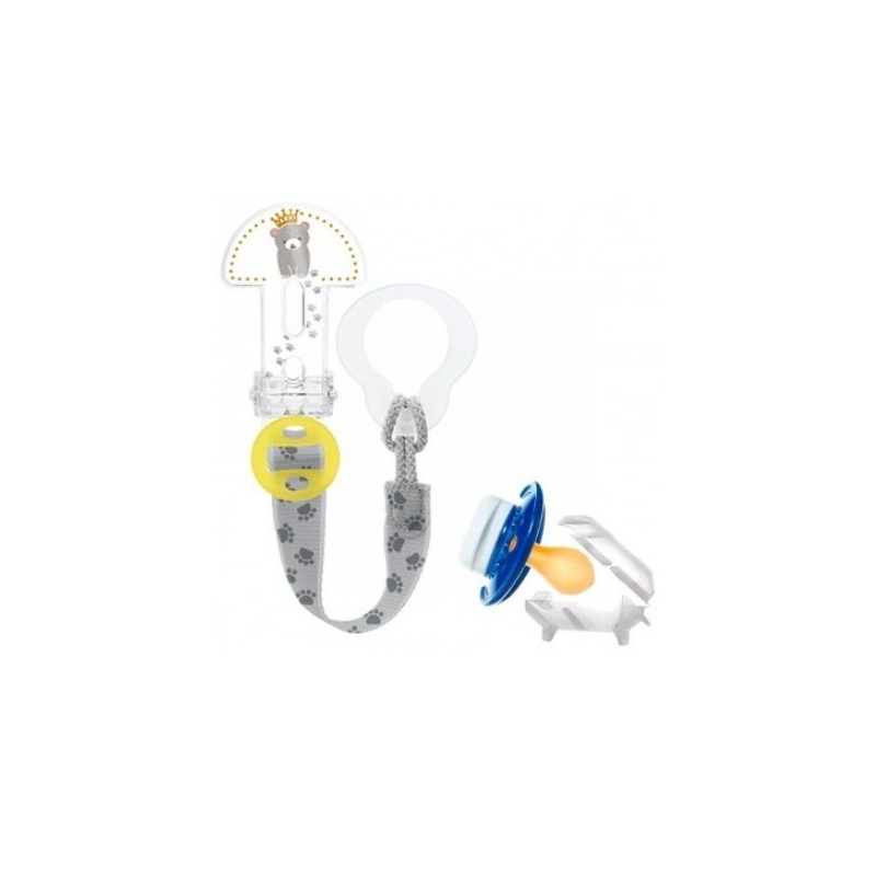 EL BROCHE SE ADAPTA A TODO TIPO DE CHUPETES. LONGITUD AJUSTABLE.ANILLO FLEXIBLE: SE ADAPTA A LOS CHUPETES DE BOTÓN. COMPATIBLE CON CHUPETES DE ANILLA, MORDEDORES Y JUGUETES.CUBIERTA DE PROTECCIÓN: MANTIENE LAS TETINAS DE LOS CHUPETES LIMPIAS Y SE ADAPTA A TODAS LAS TETINAS MAM. SE FIJA FÁCILMENTE AL REGULADOR DE LONGITUD.PINZA DEL BROCHE: EL CIERRE DEL BROCHE SE REALIZA CON UNA MANO Y LA ANCHURA DE LA ABERTURA FACILITA EL CIERRE.* EL FORMATO SE PUEDE MODIFICAR SEGÚN DISPONIBILIDAD.