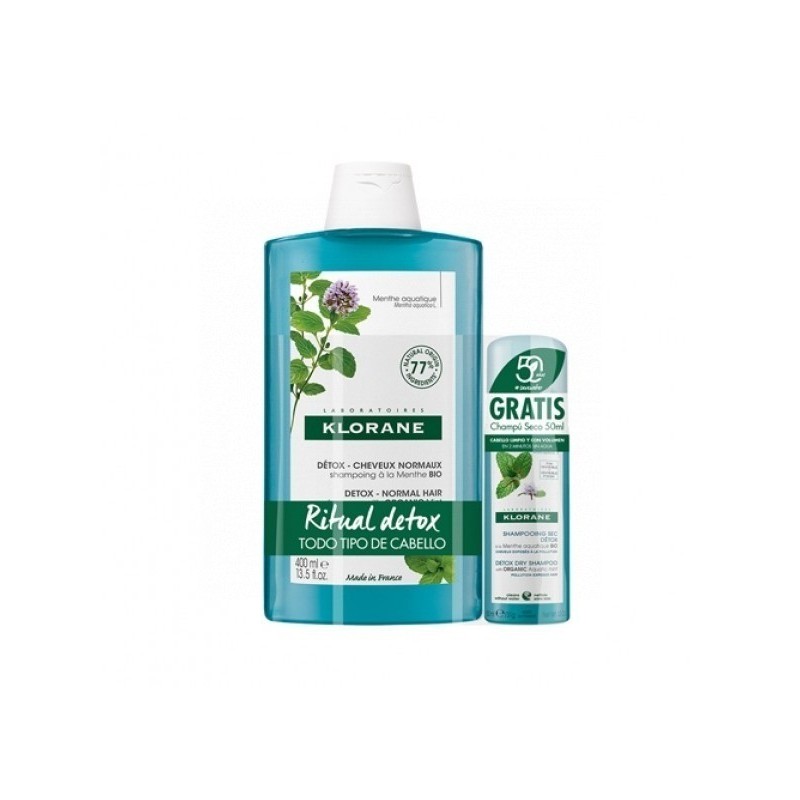 Klorane Pack Champú Detoxificante Menta Acuática 400ml + Champú Seco Detox 100ml
