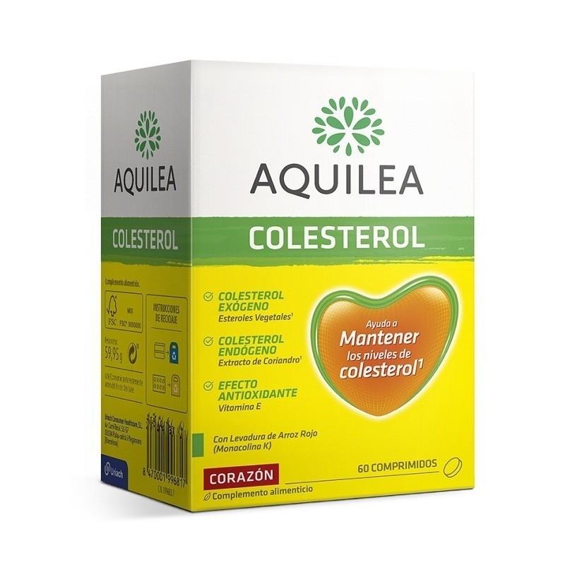EL COLESTEROL ES UNA SUSTANCIA QUE TODOS TENEMOS EN NUESTRA SANGRE. A PESAR DE SU MALA FAMA, ES IMPRESCINDIBLE PARA NUESTRO ORGANISMO YA QUE PARTICIPA EN PROCESOS ESENCIALES. ES MUY IMPORTANTE MANTENER UN NIVEL ÓPTIMO DE COLESTEROL, PARA ELLO TENEMOS EN NUESTRAS MANOS PRODUCTOS NATURALES QUE AYUDAN A REDUCIR ESOS NIVELES ALTOS DE COLESTEROL.EL COLESTEROL TIENE DOS POSIBLES ORÍGENES, EXÓGENO, QUE ES EL QUE OBTENEMOS A TRAVÉS DE LOS ALIMENTOS QUE CONSUMIMOS Y ENDÓGENO, EL QUE SINTETIZA NUESTRO ORGANISMO. ADEMÁS, EL COLESTEROL PUEDE OXIDARSE Y ACUMULARSE EN LAS ARTERIAS.AQUILEA COLESTEROL, SON UNOS STICKS NATURALES PARA EQUILIBRAR EL COLESTEROL, GRACIAS A SU EXCEPCIONAL FORMULACIÓN, YA QUE ACTÚA EN SUS 3 FRENTES. CONTIENE ESTEROLES VEGETALES QUE DISMINUYEN EL COLESTEROL SANGUÍNEO GRACIAS A QUE REDUCEN LA ABSORCIÓN DEL COLESTEROL EXÓGENO. EXTRACTO DE CORIANDRO QUE CONTRIBUYE AL MANTENIMIENTO DE UNA COLESTEROLEMIA NORMAL YA QUE ESTARÍA INVOLUCRADO EN LOS PROCESOS DEL COLESTEROL ENDÓGENO. TAMBIÉN CONTIENE MONACOLINA K (PROCEDENTE DE LA LEVADURA DE ARROZ ROJO), EXTRACTO DE SALVIA Y POLICOSANOL.ADEMÁS CONTIENE VITAMINA E QUE CONTRIBUYE A LA PROTECCIÓN FRENTE AL DAÑO OXIDATIVO Y TAMBIÉN EXTRACTO DE OLIVO”INGREDIENTES POR DOSIS DIARIA (1 STICK): ESTEROLES VEGETALES 1500 MG, LEVADURA DE ARROZ ROJO 59 MG, MONACOLINA 2,95 MG, EXTRACTO DE CORIANDRO 50MG, LINALOL 32,5 MG, EXTRACTO DE OLIVO 25 MG, TRITERPENOS 17,5 MG, POLICOSANOL 10 MG Y VITAMINA E 12 MGLOS COMPLEMENTOS ALIMENTICIOS NO DEBEN UTILIZARSE COMO SUSTITUTOS DE UNA DIETA VARIADA Y EQUILIBRADA Y DE UN MODO DE VIDA SANO. NO SOBREPASAR LA CANTIDAD DIARIA RECOMENDADA. CONSERVAR EN LUGAR FRESCO Y SECO, PROTEGIDO DE LA LUZ SOLAR. MANTENER FUERA DEL ALCANCE DE LOS NIÑOS.