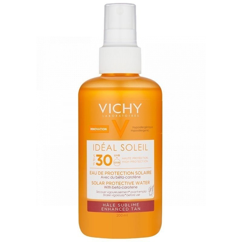 UNA INNOVADORA TEXTURA ACUOSA - ULTRALIGERA, ULTRAFRESCA. PROTECCIÓN ALTA FRENTE A LOS RAYOS UV QUE DEJA TU PIEL CON UNA SENSACIÓN FRESCA Y LIMPIA, NO PEGAJOSA Y SIN MARCAS BLANCAS. SU FÓRMULA ESTÁ ENRIQUECIDA CON BETACAROTENOS PARA PROMOVER UN TONO DE LA PIEL UNIFORME Y REALZAR TU BRONCEADO. CON INGREDIENTES DE ORIGEN NATURAL.INGREDIENTES ACTIVOSBETACAROTENOS, AGUA MINERALIZANTE DE VICHY.