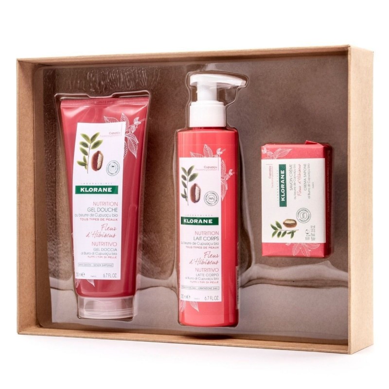 - GEL DE DUCHA (200 ML) CON AROMA DE FLEUR D'HIBISCUS, CON NOTAS DE HIBISCO, MADRESELVA Y PEONÍA, SU TEXTURA LIGERA SIN JABÓN LIMPIA DELICADAMENTE TODO TIPO DE PIELES SIN RESECAR.- LECHE CORPORAL (200 ML), UNA FORMULA QUE SE FUNDE CON LA PIEL Y PENETRA RÁPIDAMENTE SIN EFECTO PEGAJOSO PARA UNA NUTRICIÓN 24 HORAS.- JABÓN CREMA, JABÓN CON ESPUMA CREMOSA QUE LIMPIA SIN RESECAR LA PIEL GRACIAS A SU FÓRMULA ENRIQUECIDA CON AGENTES NUTRITIVOS.