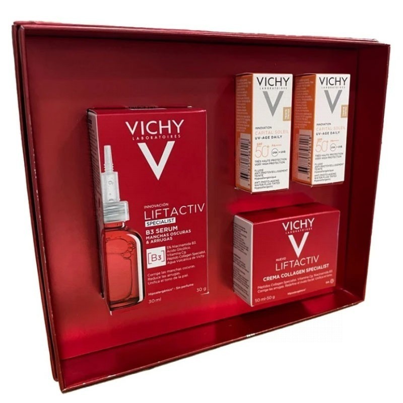 INCLUYE:VICHY LIFTACTIVE SPECIALIST B3 SÉRUM 30 ML. VICHY LIFTACTIVE COLLAGEN SPECIALIST CREMA DE DÍA 50 ML. 2 MINI TALLAS VICHY CAPITAL SOLEIL SPF50+ CON COLOR 3 ML.