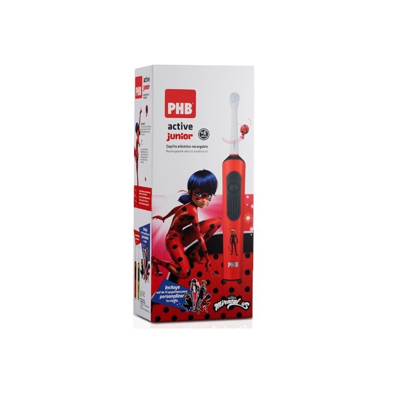 EL CEPILLO PHB ACTIVE JUNIOR GRACIAS A SUS 5.600RPM DE SU CABEZAL ROTACIONAL PROPORCIONA MAYOR EFICACIA EN LA ELIMINACIÓN DE LA PLACA BACTERIANA, ESPECIALMENTE EN LOS ESPACIOS INTERDENTALES Y SUPERFICIE INTERIOR DE LOS DIENTES.SUS FILAMENTOS DE TYNEX REDONDEADOS GARANTIZAN UN CEPILLADO SUAVE Y AGRADABLE.INCLUYE UN SET DE PEGATINAS PARA QUE LOS PEQUES PUEDAN PERSONALIZAR SU CEPILLO CON SUS PERSONAJES FAVORITOS.