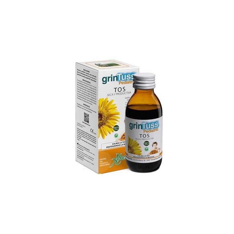 LA FORMULACIÓN DEGRINTUSS PEDIATRICHA SIDO ESPECIALMENTE ESTUDIADAPARA SER UTILIZADA A PARTIR DE 1 AÑO DE EDAD. ESPECIALMENTE EN LOS NIÑOS, DE HECHO, ES PARTICULARMENTE IMPORTANTE MODULAR LA TOS MEDIANTE UNA ACCIÓN DE PROTECCIÓN DE LA MUCOSA.DEBIDO A ESTAS CARACTERÍSTICAS,GRINTUSS PEDIATRICCALMA RÁPIDAMENTE TANTO LA TOS DIURNA COMO LA NOCTURNA, PARTICULARMENTE COMÚN EN LOS NIÑOS. GRINTUSS PEDIATRIC ES UN JARABE CON INGREDIENTES PROCEDENTES DE AGRICULTURA BIOLÓGICA Y TAMBIÉN ES ADECUADO PARALOS NIÑOS CELÍACOS. RECUERDE QUE SIEMPRE DEBE CONSULTAR A SU PEDIATRA, SOBRE TODO SI LA TOS NO SE SOLUCIONA EN POCOS DÍAS.MODO DE USO SE ACONSEJA TOMAR 1 CUCHARADITA DE POSTRE EN NIÑOS DE 1 A 6 AÑOS Y 2 CUCHARADITAS EN NIÑOS MAYORES DE 6 AÑOS, DE DOS A CUATRO VECES AL DÍA. EL JARABE PUEDE TOMARSE SOLO O DILUIDO EN UNA PEQUEÑA CANTIDAD DE LÍQUIDO TEMPLADO (AGUA, LECHE, TÉ O INFUSIONES).COMPOSICIÓNMIEL, COMPLEJO MOLECULAR DE RESINAS, POLISACÁRIDOS Y FLAVONOIDES DE GRINDELIA, LLANTÉN Y HELICRISO (POLIRESIN®), TITULADO EN POLISACÁRIDOS (PESO MOLECULAR >20.000 DALTON) > 20 %. CONTIENE ADEMÁS: AZÚCAR DE CAÑA, AGUA, ACEITES ESENCIALES DE: LIMÓN, NARANJO DULCE, MIRTO, AROMA NATURAL DE LIMÓN, GOMA ARÁBIGA, GOMA XANTANA.UNA VEZ ABIERTO, UTILIZAR EL PRODUCTO EN UN PLAZO DE TRES MESES. LA POSIBLE PRESENCIA DE PEQUEÑAS PARTÍCULAS SIN DISOLVER ES DEBIDA A LA ALTA CONCENTRACIÓN DE EXTRACTOS LIOFILIZADOS Y NO PERJUDICA LA CALIDAD DEL PRODUCTO.LA AGITACIÓN DEL PRODUCTO POCO ANTES DEL USO PERMITE RESTABLECER LAS CONDICIONES DE HOMOGENEIDAD DEL JARABE. CERRAR BIEN EL FRASCO DESPUÉS DE USARLO.FORMATO FRASCO DE VIDRIO DE 210 G.