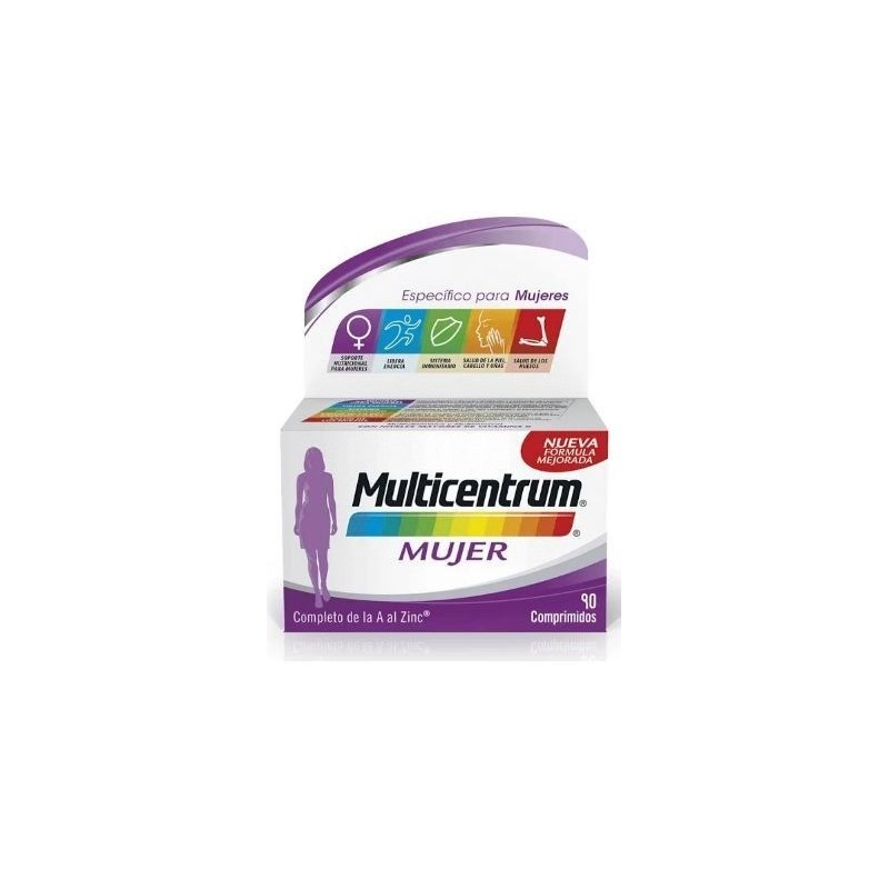 COMPLEMENTO ALIMENTICIO COMPLETO, CON VITAMINAS Y MINERALES, ESPECIALMENTE FORMULADO PARA SATISFACER LAS NECESIDADES NUTRICIONALES DE LAS MUJERES. MODO DE EMPLEO TOMAR UN COMPRIMIDO AL DÍA. PRECAUCIONES Y ADVERTENCIAS LOS COMPLEMENTOS ALIMENTICIOS NO DEBEN UTILIZARSE COMO SUSTITUTOS DE UNA ALIMENTACIÓN VARIADA Y EQUILIBRADA Y UN MODO DE VIDA SANO. NO SUPERAR LA DOSIS DIARIA EXPRESAMENTE RECOMENDADA. MANTENER FUERA DEL ALCANCE DE LOS NIÑOS MÁS PEQUEÑOS. USO EN PACIENTES CON INTOLERANCIA ALIMENTARIA ESTE PRODUCTO LO PUEDE TOMAR UNA PERSONA CELÍACA, ALÉRGICA/INTOLERANTE AL HUEVO, ALÉRGICA A LA PROTEÍNA DE LECHE O INTOLERANTE A LA LACTOSA.COMPOSICIÓN POR UNIDADCALCIO 320 MILIGRAMOSCOBRE 0.5 MILIGRAMOSCROMO 40 MICROGRAMOSFOSFORO 105 MILIGRAMOSHIERRO 10 MILIGRAMOSMAGNESIO 100 MILIGRAMOSMANGANESO 2 MILIGRAMOSMOLIBDENO 50 MICROGRAMOSSELENIO 30 MICROGRAMOSVITAMINA A 667 MICROGRAMOSVITAMINA B1 1.32 MILIGRAMOSVITAMINA B12 3 MICROGRAMOSVITAMINA B2 2.1 MILIGRAMOSVITAMINA B3 16 MILIGRAMOSVITAMINA B5 7.5 MILIGRAMOSVITAMINA B6 2.1 MILIGRAMOSVITAMINA B8 62.5 MICROGRAMOSVITAMINA B9 300 MICROGRAMOSVITAMINA C 80 MILIGRAMOSVITAMINA D 10 MICROGRAMOSVITAMINA E 16 MILIGRAMOSVITAMINA K 24.5 MILIGRAMOSYODO 100 MICROGRAMOSZINC 5 MILIGRAMOSPERO NETO: 37GR.COMERCIALIZADO POR GSK CH, CALLE SEVERO OCHOA, 2, TRES CANTOS, MADRID, 28760, ESPAÑA, 918070300