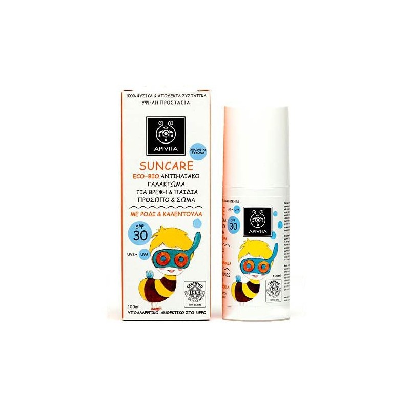 Apivita Suncare Bio Leche Solar Niños Cara Cuer Granad Calénd Spf30+, 100ml