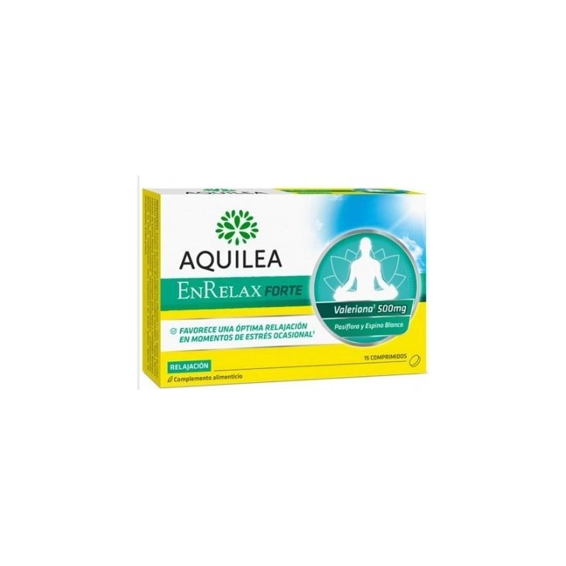 AQUILEA ENRELAX FORTE OFRECE UNA SOLUCIÓN NATURAL EN FORMA DE COMPRIMIDOS PARA AYUDAR A FAVORECER LA RELAJACIÓN DURANTE EL DÍA EN MOMENTOS DE ESTRÉS OCASIONAL.EL ESTRÉS OCASIONAL SE PADECE DURANTE UN BREVE PERIODO DE TIEMPO DEBIDO A UNA PRESIÓN PUNTUAL PRODUCIDA POR SITUACIONES INESPERADAS O POCO HABITUALES, COMO ENTREGAS EN EL TRABAJO, PRESENTACIONES O EXÁMENES.AQUILEA ENRELAX FORTE TE AYUDA A COMBATIR EL ESTRÉS OCASIONAL GRACIAS A SU FÓRMULA CON LA MAYOR CONCENTRACIÓN DE VALERIANA DEL MERCADO (500MG) Y CON EXTRACTOS NATURALES COMO PASIFLORA Y ESPINO BLANCO.LA VALERIANA ES LA PLANTA IDEAL PARA TODA PERSONA SOMETIDA A PERIODOS DE ESTRÉS, YA QUE AYUDA A RELAJAR EL SISTEMA NERVIOSO DE MANERA NATURAL.LA PASIFLORA ES UNA DE LAS PLANTAS MÁS UTILIZADAS PARA MANTENER LA ACTIVIDAD MENTAL DURANTE LOS PERIODOS DE ESTRÉS.EL ESPINO BLANCO ES LA PLANTA IDEAL PARA TODA PERSONA SOMETIDA A PERIODOS DE ESTRÉS Y RITMO DE VIDA ACELERADO YA QUE AYUDA A TRANQUILIZAR.MODO DE EMPLEO1 COMPRIMIDO AL DÍA.COMPOSICIÓNPOR 1 COMPRIMIDO: EXTRACTO DE VALERIANA (500MG), EXTRACTO DE PASIFLORA (100MG), EXTRACTO DE ESPINO BLANCO (100MG)LOS COMPLEMENTOS ALIMENTICIOS NO DEBEN UTILIZARSE COMO SUSTITUTOS DE UNA DIETA VARIADA Y EQUILIBRADA Y DE UN MODO DE VIDA SANO. NO SOBREPASAR LA CANTIDAD DIARIA RECOMENDADA. CONSERVAR EN UN LUGAR FRESCO Y SECO, PROTEGIDO DE LA LUZ SOLAR. MANTENER FUERA DEL ALCANCE DE LOS NIÑOS MÁS PEQUEÑOS. NO ADMINISTRAR A NIÑOS MENORES DE 12 AÑOS.