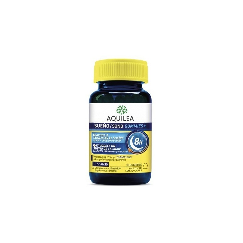 Tu mejor alidado será Aquilea Sueño Gummies+ con un innovador formato gummy, sin azúcar, que contiene una combinación única de 1,95mg de melatonina + melotime™ para ayudar a un descanso de hasta 8 horas.
