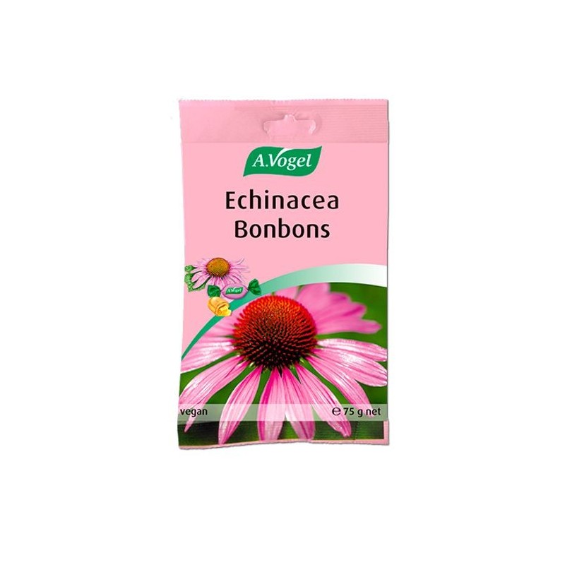 LOS ECHINACEA BONBONS DE A. VOGEL SON UNOS CARAMELOS REFRESCANTES RELLENOS DE EXTRACTO NATURAL DE ECHINACEA FRESCA DE CULTIVO ECOLÓGICO, GRACIAS A ESTE CONTENIDO, ACTÚAN COMO ANTIMICROBIANOS, EN CONTRA DE VIRUS, HONGOS Y DEMÁS AFECCIONES INFECCIOSAS.MODO DE EMPLEOSE PUEDEN TOMAR COMO CUALQUIER OTRO CARAMELO O DULCE CONVENCIONALINDICACIONESINDICADOS COMO ANTIMICROBIANOS COMO COMBATIENTES DE VIRUS, HONGOS Y DEMÁS INFECCIONES.COMPOSICIÓNINGREDIENTES:JARABE DE GLUCOSA, AZÚCAR DE CAÑA INTEGRAL, MIEL PURA DE ABEJA, EXTRACTO DE HIERBAS, ECHINAFORCE, JARABE DE CARAMELO,AZÚCAR, JARABE DE GLUCOSA, JARABE DE AZÚCAR INVERTIDO, AGUA, ACIDIFICANTE: ÁCIDO CÍTRICO, ACEROLA, GROSELLA NEGRA, AROMATIZANTES NATURALES, ECHINACEA, COLORANTES NATURALES DE EXTRACTOS DE FRUTA, EXTRACTO DE HIERBAS, SAL.ANÁLISIS MEDIO POR 100 G:PROTEÍNAS: HIDRATOS DE CARBONO: 88 GLÍPIDOS: ENERGÍA 100 G CONTIENEN 352 KCAL / 1472 KJMODO DE EMPLEO DEJAR DISOLVER EN LA BOCA.USO EN PACIENTES CON INTOLERANCIA ALIMENTARIA ESTE PRODUCTO LO PUEDE TOMAR UNA PERSONA CELIACA, ALÉRGICA/INTOLERANTE AL HUEVO, O INTOLERANTE A LA LECHE.CONTIENE ÁCIDO CÍTRICO.ACEITE ESENCIAL DE MENTA, MENTOL NATURAL, ÁCIDO CÍTRICO. DE AGRICULTURA ECOLÓGICA