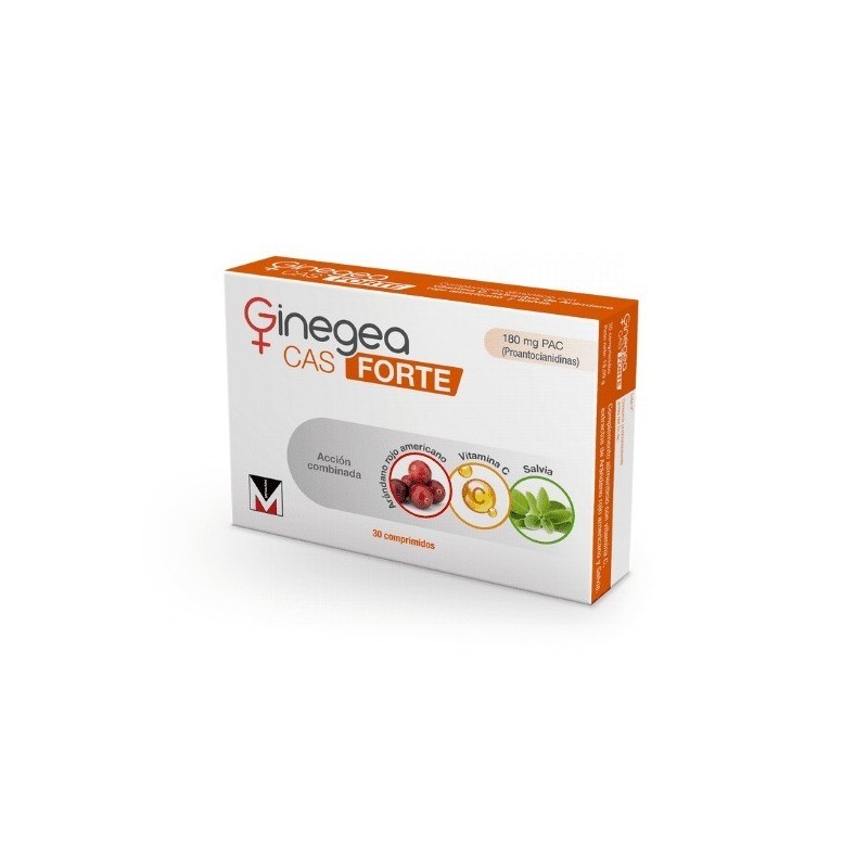 GINEGEA CAS FORTE ES UN COMPLEMENTO ALIMENTICIO QUE CONTIENE VITAMINA C, EXTRACTO DE ARÁNDANO ROJO AMERICANO CON 180 MG DE PROANTOCIANIDINAS Y EXTRACTO DE SALVIA.INGREDIENTESEXTRACTO SECO DE ARÁNDANO ROJO AMERICANO (VACCINIUM MACROCARPON AITON, BAYA), EXTRACTO SECO DE SALVIA (SALVIA OFFICINALIS , PARTE AÉREA)15% ÁCIDO URSÓLICO, AGENTE DE CARGA: CELULOSA MICROCRISTALINA, ESTABILIZANTES: HIDROXIPROPILCELULOSA, FOSFATO CÁLCICO DIBÁSICO, ÁCIDO L-ASCÓRBICO (VITAMINA C), ESTABILIZANTE: CARBOXIMETILCELULOSA SÓDICA ENTRELAZADA, ANTIAGLOMERANTE: DIÓXIDO DE SILICIO, ESTABILIZANTE: ESTEARATO DE MAGNESIO, AGENTE DE RECUBRIMIENTO: HIDROXIPROPILMETILCELULOSA, AGENTE DE CARGA: CELULOSA MICROCRISTALINA, ESTABILIZANTE: ÁCIDO ESTEÁRICO.SIN GLUTEN. SIN AZÚCARES. SIN LACTOSA.MODO DE EMPLEOSE RECOMIENDA TOMAR 2 COMPRIMIDOS DE GINEGEA CAS FORTE AL DÍA, PREFERENTEMENTE 1 POR LA MAÑANA Y 1 POR LA NOCHE, DURANTE 10 DÍAS. POSTERIORMENTE PUEDE CONTINUAR USANDO GINEGEA CAS FORTE CON LA TOMA DE 1 COMPRIMIDO AL DÍA.CÓMO SE CONSERVACONSERVAR EN UN LUGAR PROTEGIDO DE LA LUZ, FRESCO Y SECO. NO SUPERAR LA DOSIS DIARIA RECOMENDADA. MANTENER FUERA DEL ALCANCE DE LOS NIÑOS MÁS PEQUEÑOS. NO ADMINISTRAR A NIÑOS MENORES DE 12 AÑOS. LOS COMPLEMENTOS ALIMENTICIOS NO DEBEN UTILIZARSE COMO SUSTITUTO DE UNA DIETA VARIADA Y EQUILIBRADA Y UN ESTILO DE VIDA SALUDABLE.